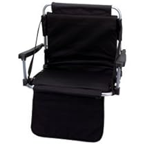 Features 600D polyester material spring loaded bleacher hooks arm rests adjustable shoulder strap convenient storage pocket durable metal tube frame and 2 heavy-duty squeeze buckles to keep seat securely closed for storage and carrying. Back measures 16-1/2 inches x 15-1/2 inches seat measures 16-1-2 inches x 14 inches 4 inch thick when folded up and snapped closed.Durable Metal Tube FrameSpring Loaded Bleacher HooksArm RestsAdjustable Shoulder StrapConvenient Storage PocketBack Measures 16-1/2 inches x 15-1/2 inchesSeat Measures 16-1-2 inches x 14 inches